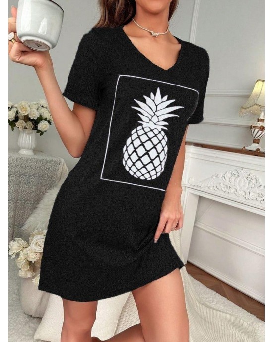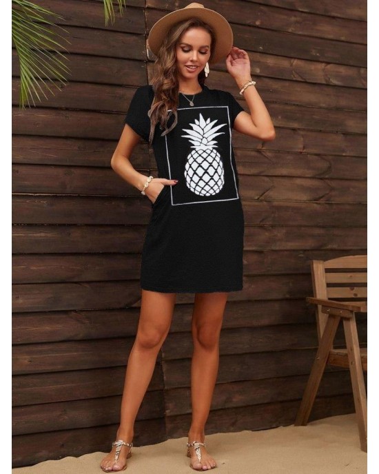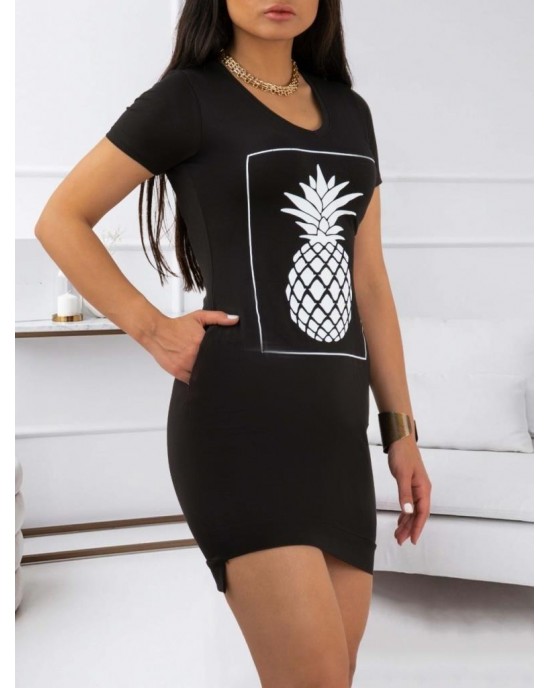 Ananas Baskılı Kısa Kol Viskon Elbise BN-56085