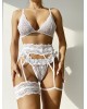 Arias Closet Beyaz Dantel Bacak Bantlı Jartiyerli Sütyen Külot Takımı
