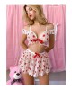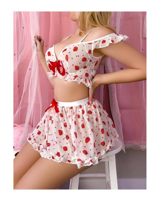 ???? Beyaz Üstüne Çilek Desenli Etekli Fantezi Sütyen Takımı ????