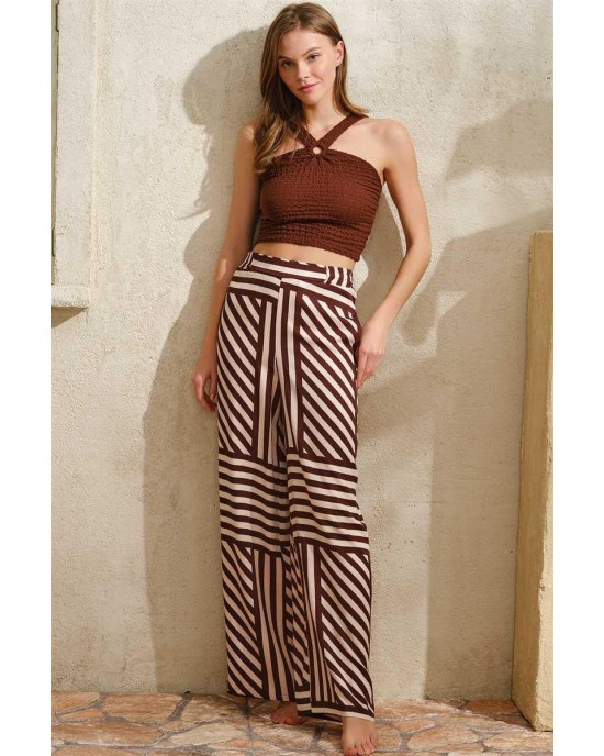 Yaz aylarında hem konfor hem de şıklık arayanlar için tasarlanan bu pijama takımı, modern çizgili deseni ve zarif detaylarıyla öne çıkar. Boyundan bağlamalı üst tasarım feminen bir duruş sunarken, ince ip detayları takıma hareketli ve şık bir görünüm kazandırır. Uzun pijama altı rahat kesimi sayesinde gün boyu konfor sağlar. Hafif ve nefes alabilen kumaşı ile yazlık kullanım için ideal bir tercihtir.
