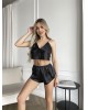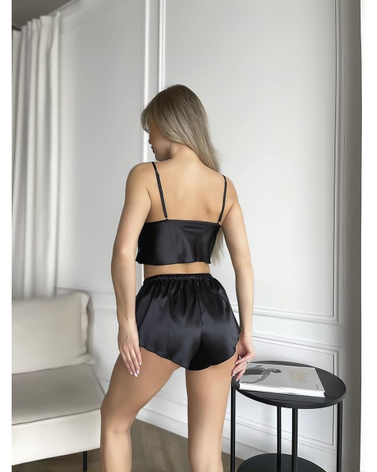 Arias Closet İnce Askılı Siyah Saten Şortlu Takım