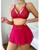 Arias Closet Kırmızı Dantel İşlemeli Etekli Fantezi Sütyen Takımı