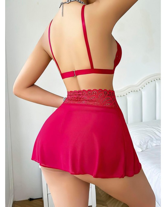 ???? Kırmızı Dantel İşlemeli Etekli Fantezi Sütyen Takımı ????