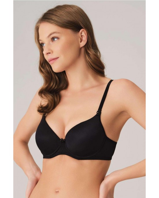 Günlük stilin vazgeçilmezi olan bu klasik t-shirt sütyeni, hem konforu hem de pürüzsüz görünümü bir arada sunar. Balenli ve dolgulu yapısıyla göğüs formunu nazikçe şekillendirirken, çıkarılabilir askıları sayesinde esnek kullanım imkânı sunar.