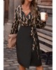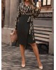 Kadın Uzun Kollu Kruvaze Yaka Dijital Baskılı Fiyonk Detay Dalgıç Kumaş Elbise