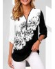 Uzun Kollu V Yaka Fermuarlı Dijital Baskı çiçek Desen Salaş Dalgıç Bluz BN-45918